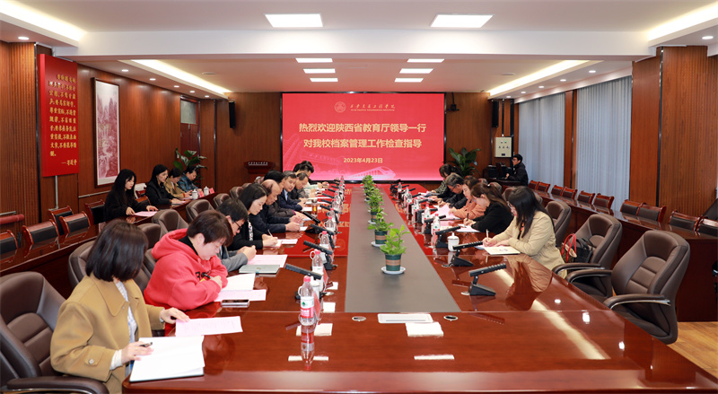 4月23日,陕西省高校档案工作领导小组副组长、省教育厅办公室调研员、省高教系统档案学会副理事长王瑛,省高教系统档案学会理事长、西安翻译学院发展规划处处长吴连书,检查组第七组组长、 西安工业大学档案馆馆长李宁,陕西科技大学档案馆副研究馆员王娟,西安航空职业技术学院档案馆副馆长张欢,西安科技大学高新学院图书档案馆馆长原艳丽一行六人来我校检查指导档案工作。校长刘建朝、副校长赵征出席会议。